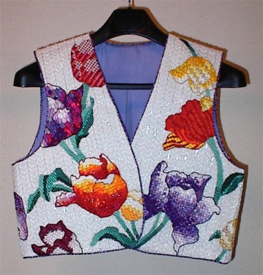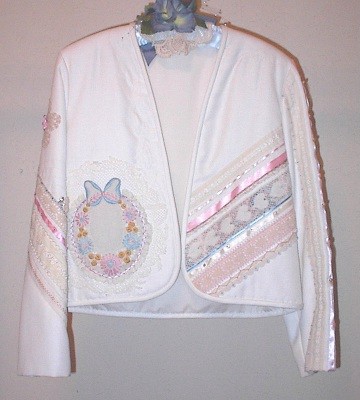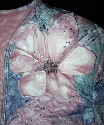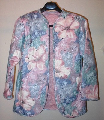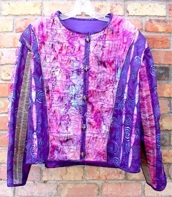 Jacket" Machine quilted print jacket with dimensional applique, beading, and