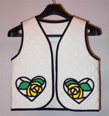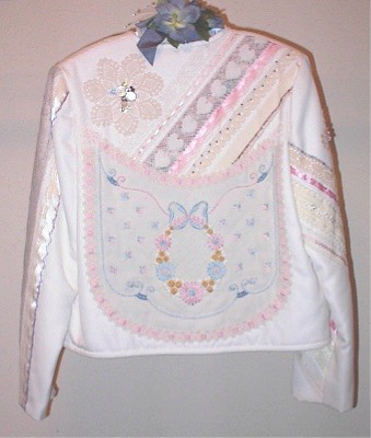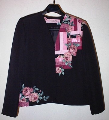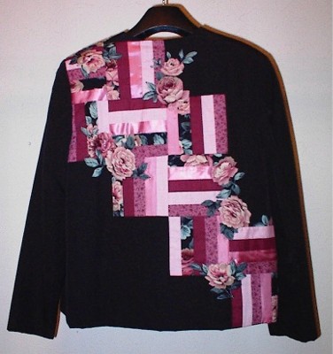 Rose" Jacket featuring Rail Fence piecing and hand Broderie Perse applique.