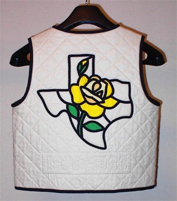 in stained-glass applique technique. Hand quilted and appliqued. Made for the Texas