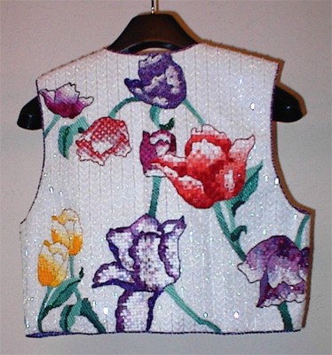 heavily embellished with seed beads and bugle beads. Design by June Moes.